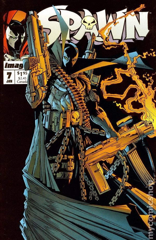 "Payback!" Part 2 of 2. Created, story, and art by Todd McFarlane. After barely surviving his encounter with the cybernetic juggernaut known as Overtkill, Spawn decides it's time to break out the heavy artillery. Using his special forces training and an arsenal of state of the art weaponry, Spawn proceeds to dismantle one of the most dangerous villains in the Image Universe. Thus cementing his role as a force to be reckoned with in the IU. Cover price $1.95.