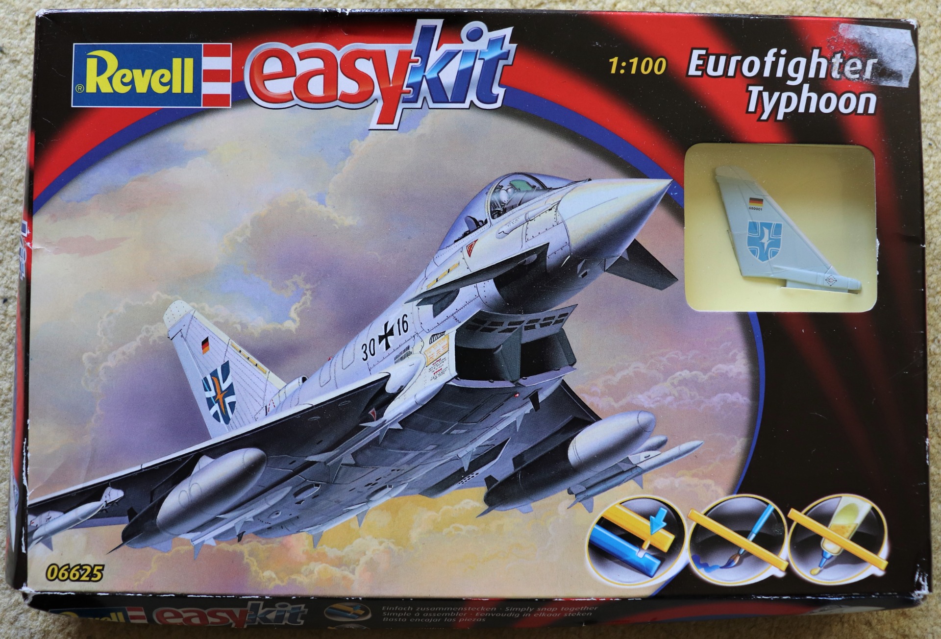 A prepainted snap kit of the Eurofighter Typhoon in 1/100 scale. Markings are for German aircraft.