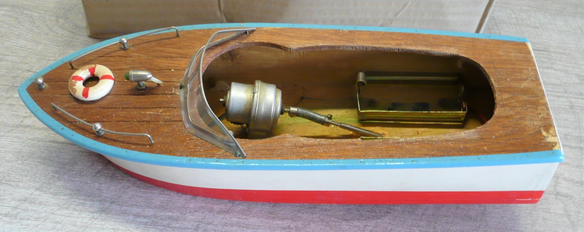 Zeldzaam aangeboden met de hand gebouwde Japanse Speedboot uit het begin van de 50-er jaren.