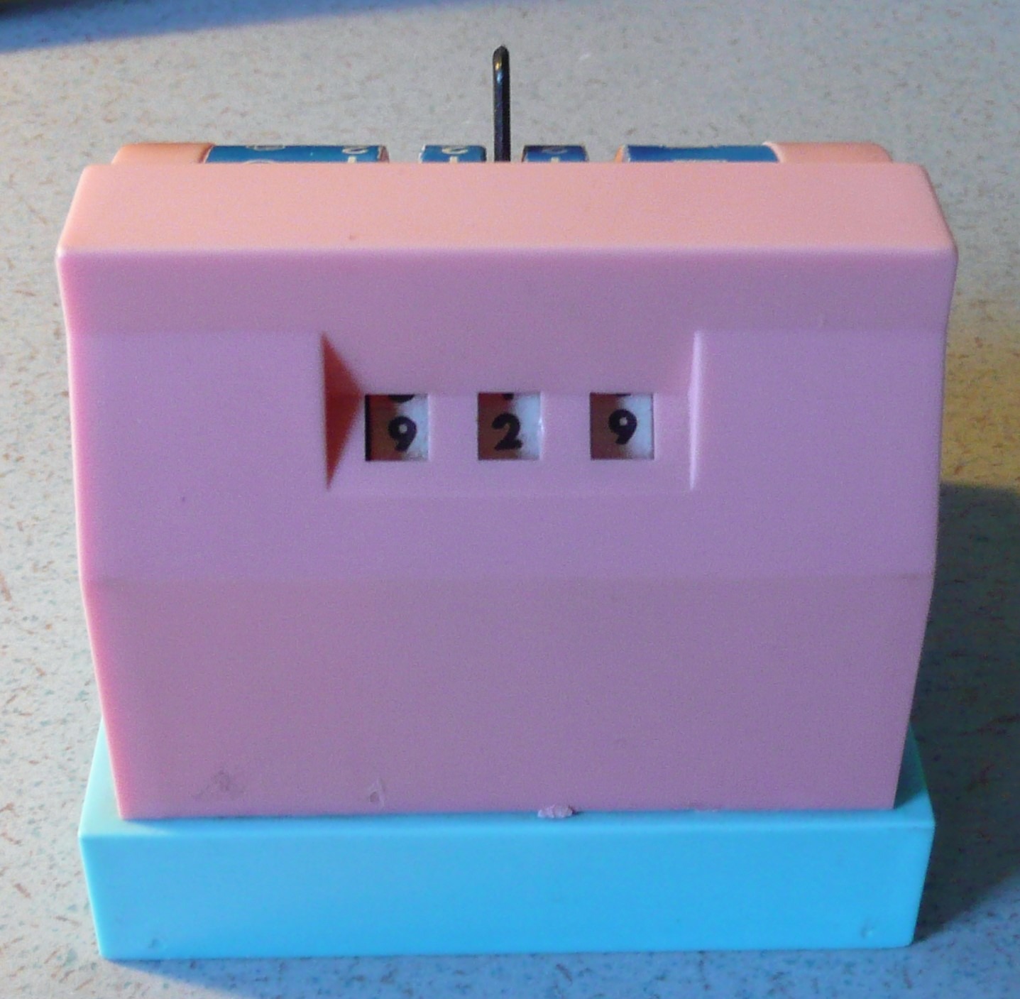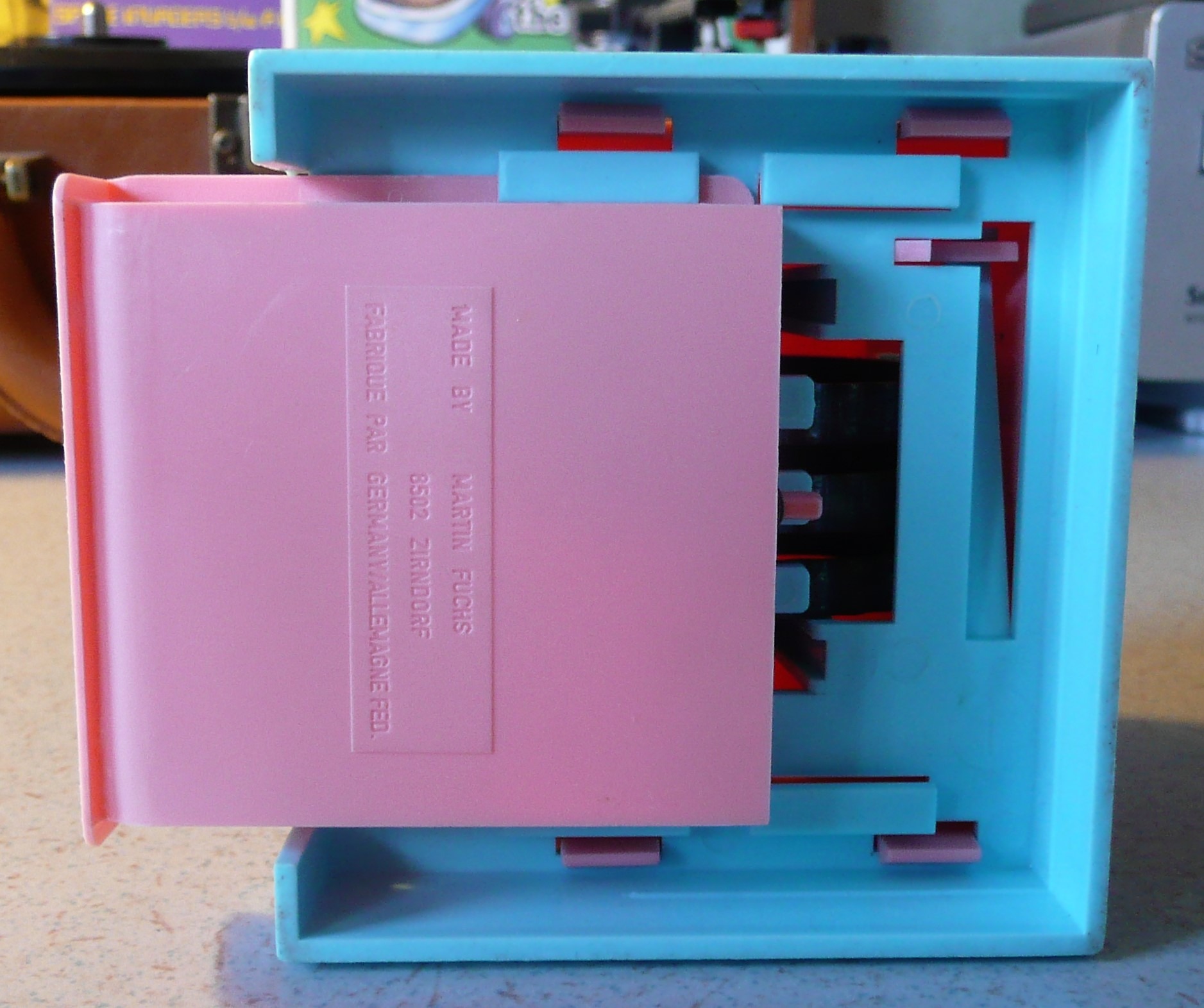 Afmeting: 7 x 7.5 cm Kleur: roze/licht blauw Materiaal: kunststof/hard plastic.