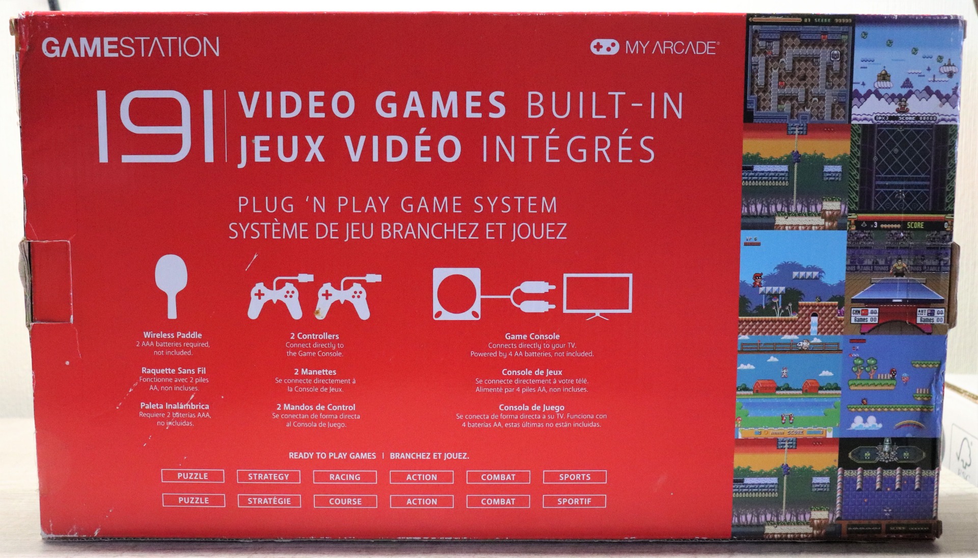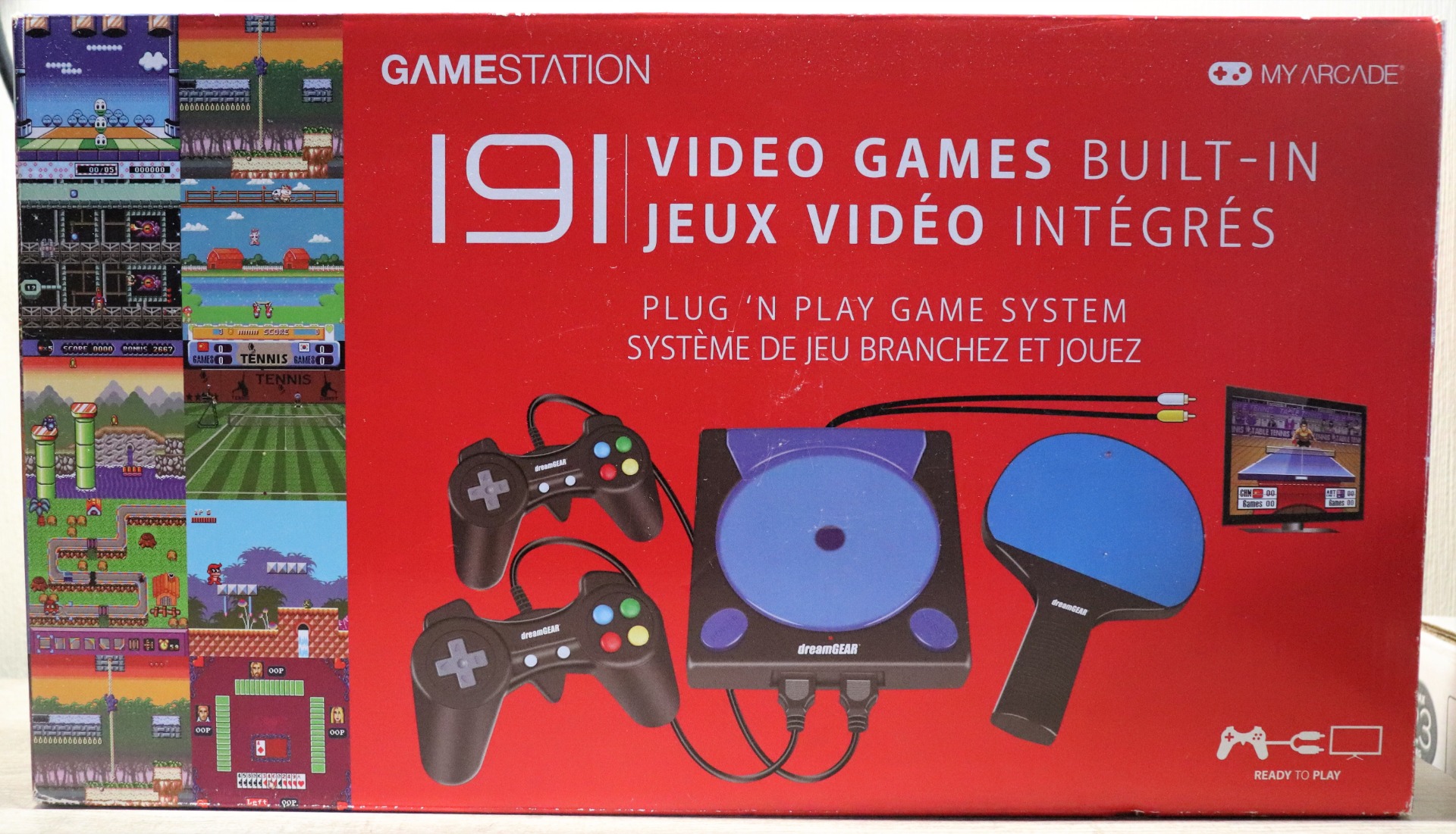 The GameStation connects quickly to your TV and offers 191 video games to choose from. With the inclusion of 2 console style ergonomic controllers and a wireless paddle controller, this system is fun for the whole family.