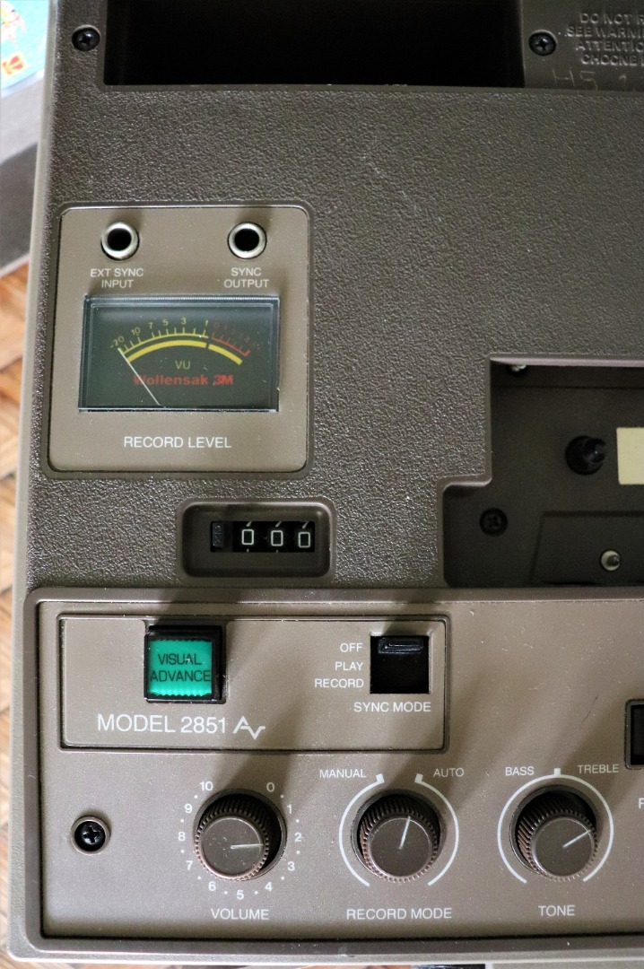 Wollensak 3M Model 2873 Cassette System for sale. This machine is for automating slide shows with audio. You can record what you want and sync it with the particular slide it would be about and advance the slide projector on to the next slide. This is especially useful for presentations when the person knowledgeable about the slides might not be there to present them. This unit has been tested to power on and to make sure the cassette motor works to forward, rewind, and play. Sound has been tested and works perfectly.This unit is works with the following projectors: