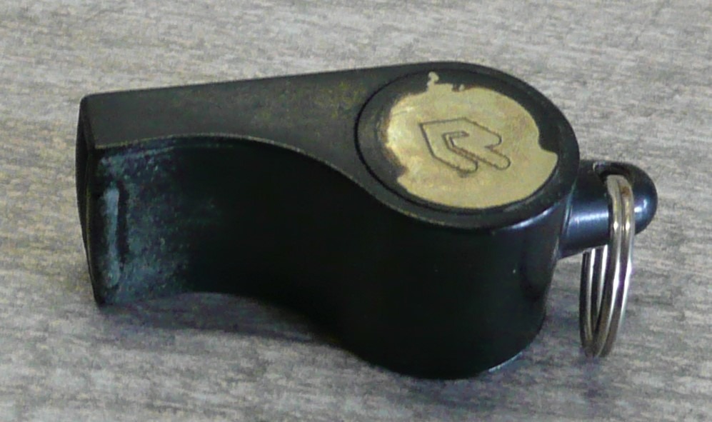 Genuine WWII black bakelite US whistle used by MPs, and mostly by small unit leaders (Squad, Platoon...). This one is marked The ACME THUNDERER - Made in England.