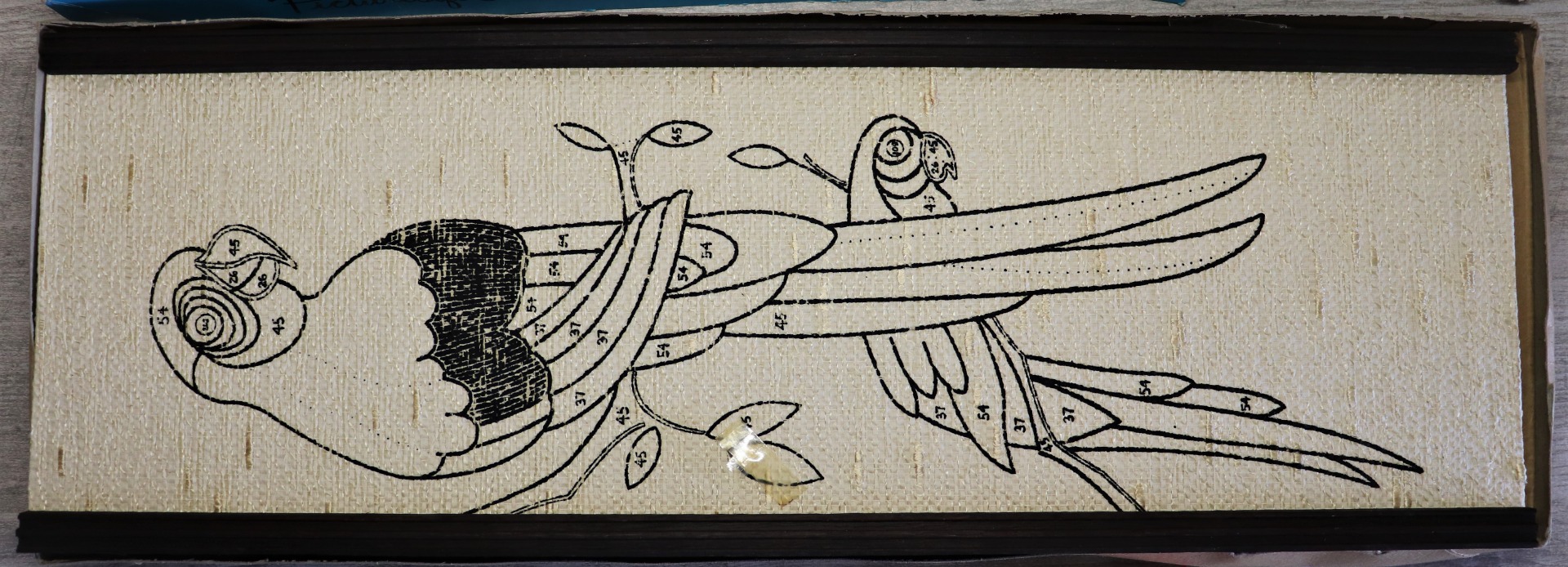 A "Picturesque" panel covered with a rich textured fabric of imported Grasscloth and trimmed with a new style decorative hardwood frame.....all pre-numbered.