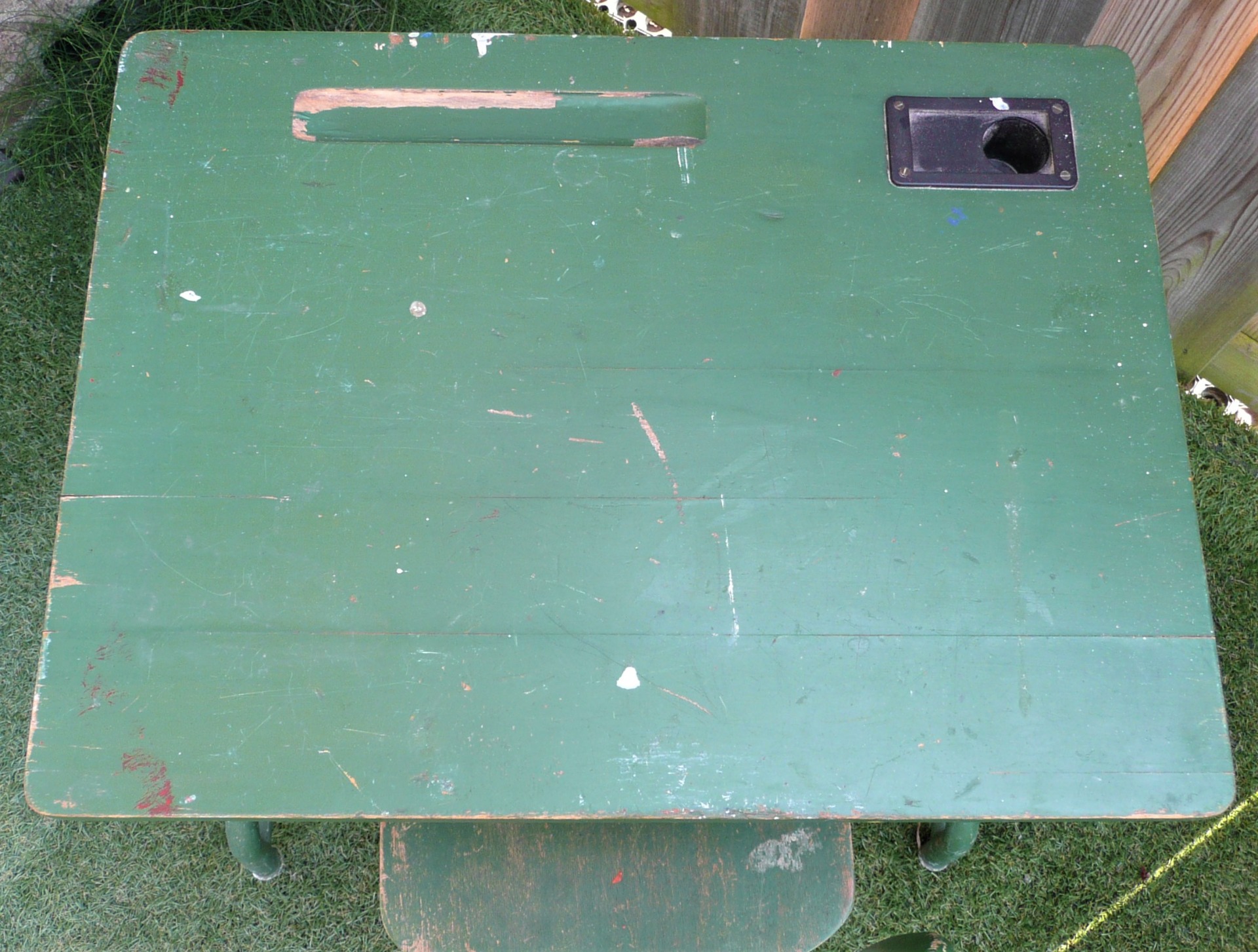 Zeer oud tafeltje met bijpassende stoel welke op de scholen werden gebruikt.