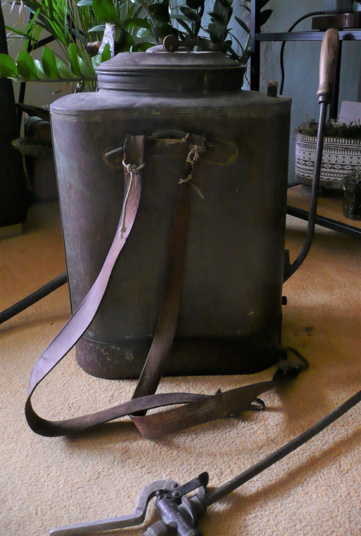 Oude koperen gifspuit/onkruidverdelger van de Birchmeier & Cie.