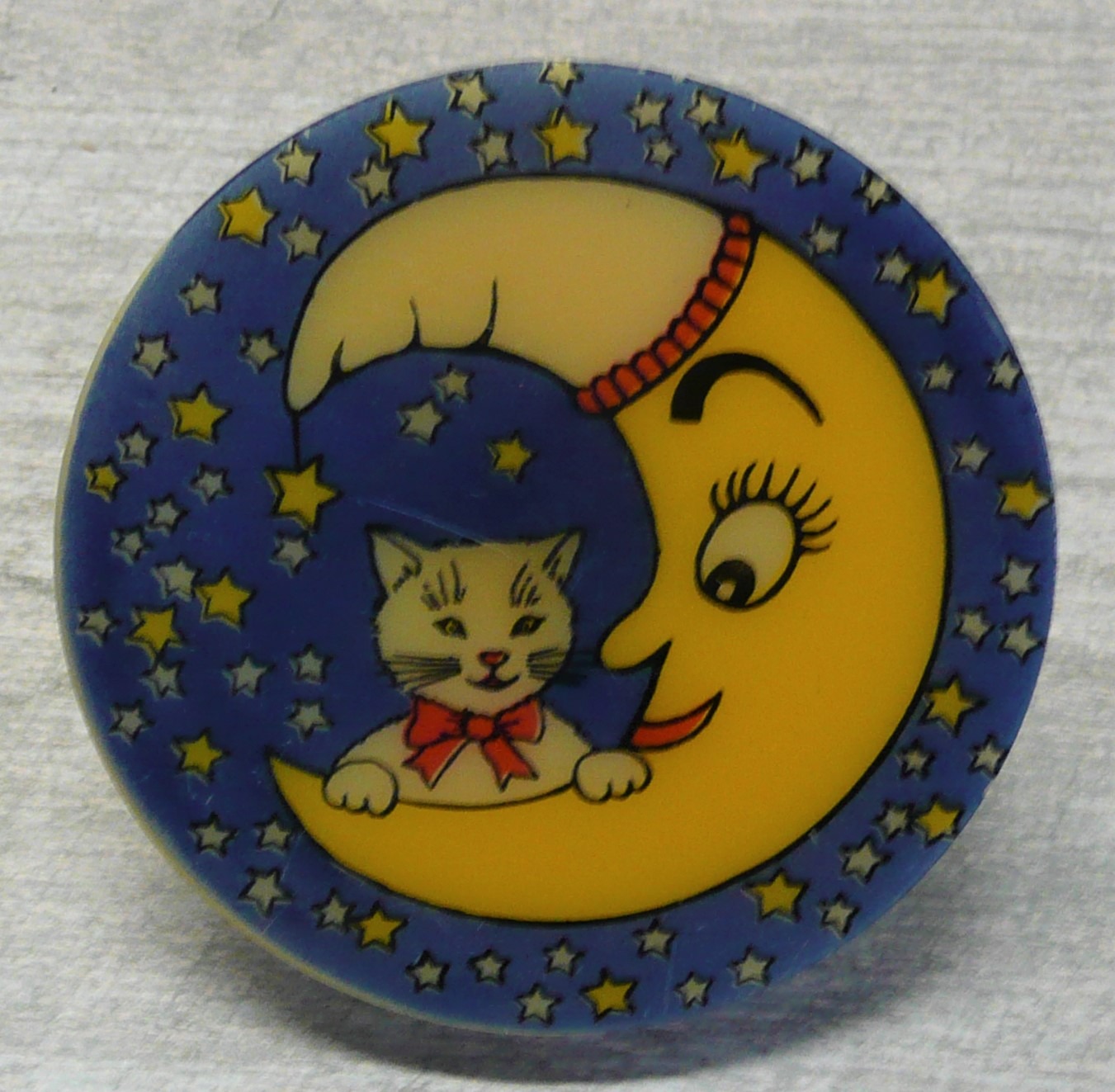 Leuke vintage nachtlampje met de afbeelding van een poes en de Maan - jaren 70.