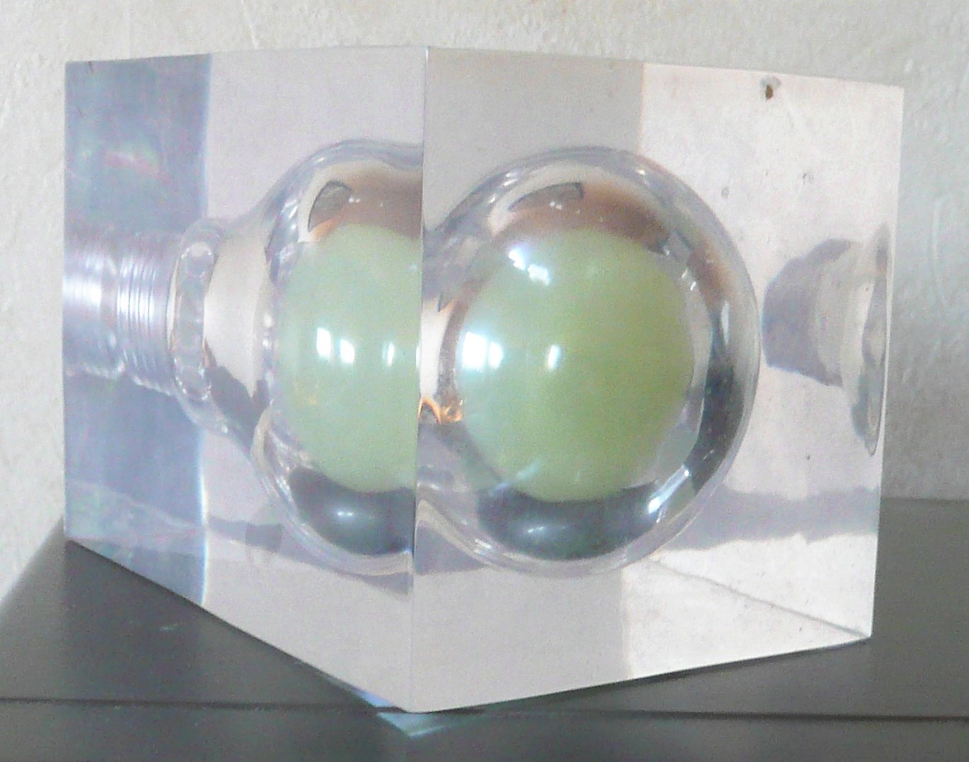 Designer: Pierre Giraudon. Dimensions: 11cm H, 8cm W/D, condition: good, material: acrylic glass.