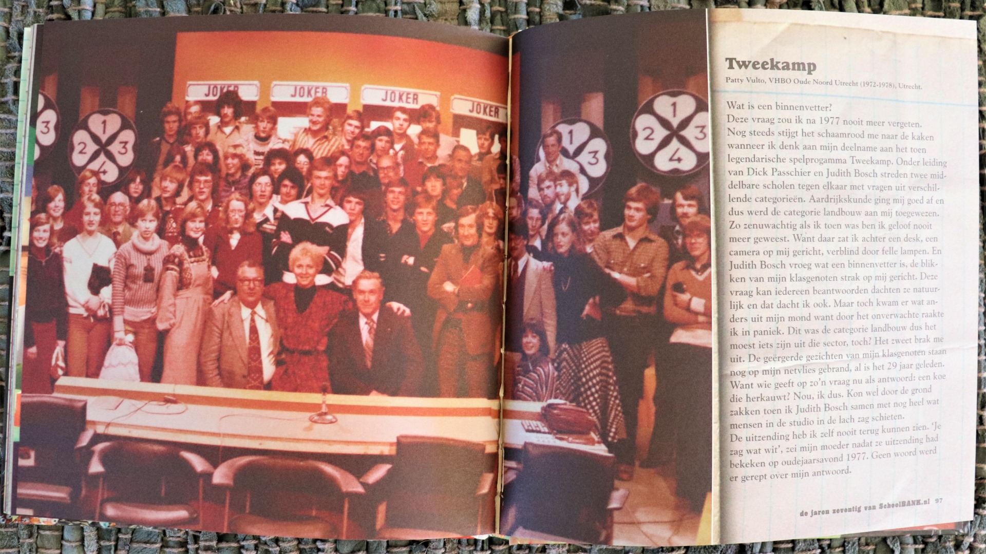 De jaren zeventig! Het haar van de leraar was vaak even lang en uitbundig als dat van zijn leerlingen. Er ontstonden verschillende muziekstromingen: rock-bands als The Who, The Rolling Stones en Kiss beleefden hun hoogtepunt; Abba won in 1974 het songfestival, Bob Marley zorgde in 1975 met No Woman No Cry voor een doorbraak van de reggae, terwijl tegelijk de punk opkwam - The Clash, Sex Pistols - en de disco met Donna Summer, Gloria Gaynor en Chic. In Nederland zong George Baker naast Rob de Nijs. En duizenden meisjes droomden van Donny Osmond. Geen kamer kon zonder oranje, bruin en paars. Plateauzolen en hanenkammen zorgden voor extra lengte. Broekspijpen waren wijd, wijder, wijdst.