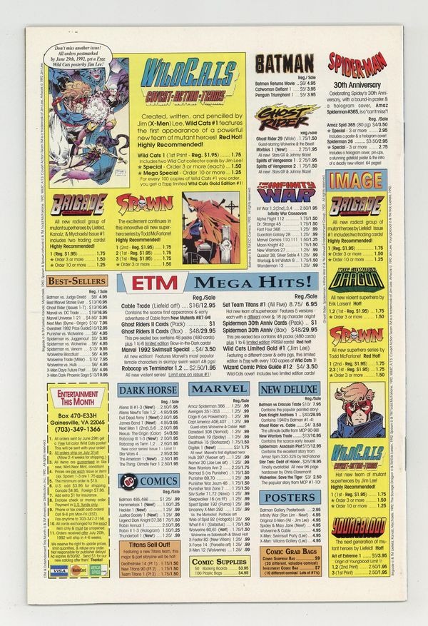 Direct edition. "Questions!" Part 1 of 4. Created, story, and art by Todd McFarlane. When government assassin Al Simmons is murdered, a deal with the devil brings him back to the realm of the living. But now he walks the shadows as the disfigured soldier of hell known as Spawn. Armed with unimaginable, but finite, magical abilities, Spawn is destined to play an important role in the upcoming Armageddon. But, what happens when this rebellious anti-hero decides he won't fight for either side? Superstar artist and Image co-founder, Todd McFarlane, creates a character who has gone on to inspire a major motion picture, an HBO animated series, numerous spin-off comic series, and one of the most successful toylines of all time. Spawn centerfold by Todd McFarlane & Ken Steacy. Pin-up of Spawn by George Perez. Pin-up of PITT by Dale Keown. Cover by McFarlane & Steacy. Cover price $1.95.