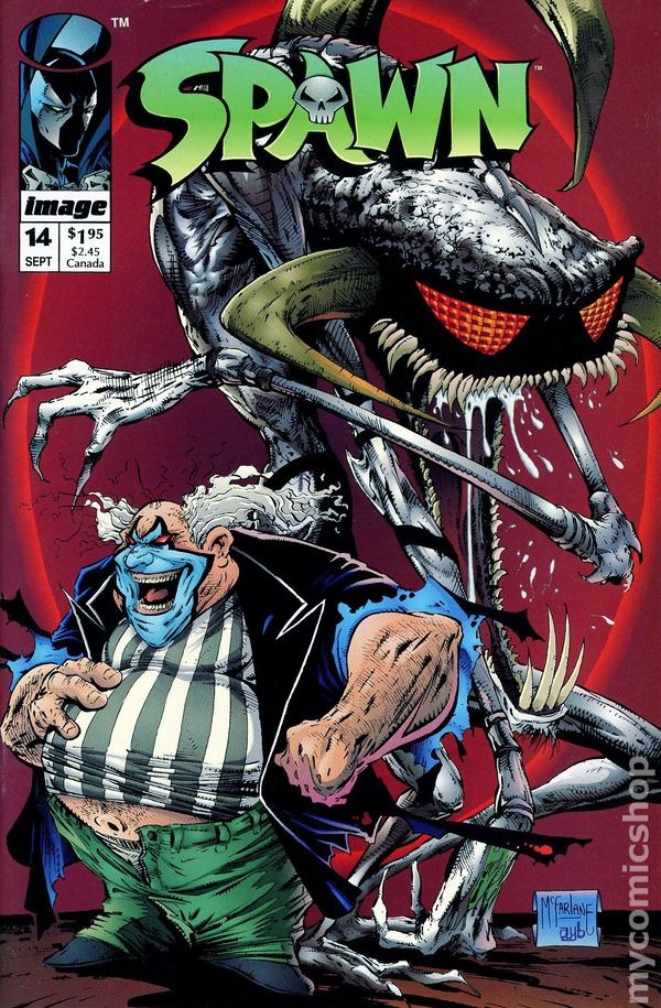 "Myths!" Part 1 of 2. Story and art by Todd McFarlane. The demonic Violator returns to take on the Medieval Spawn from issue #9. Meanwhile, Detectives Sam and Twitch investigate a lead on the back-alley vigilante. Includes 2 Spawn pin-ups. Cover price $1.95.