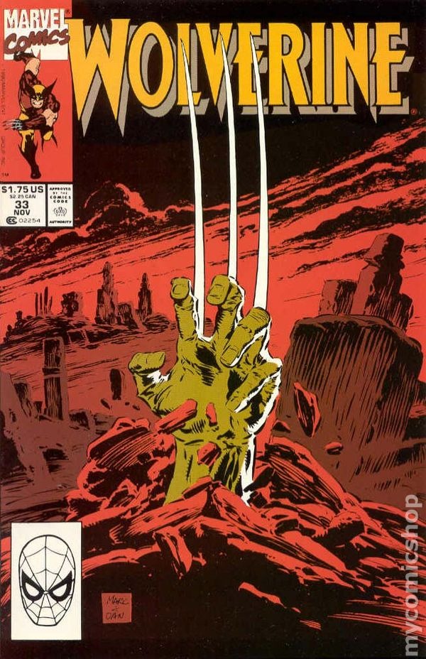 "Grave Undertakings!" Written by Larry Hama. Art by Marc Silvestri and Dan Green. Faking his death, Logan heads to Japan and infiltrates the manufacturing operation of the drug czar Dai-Komo. Plus, he runs into Goro, the assassin that stabbed him with the katana. Far be it from Logan to look a gift horse in the mouth. 32 pages, FC Cover price $1.75.