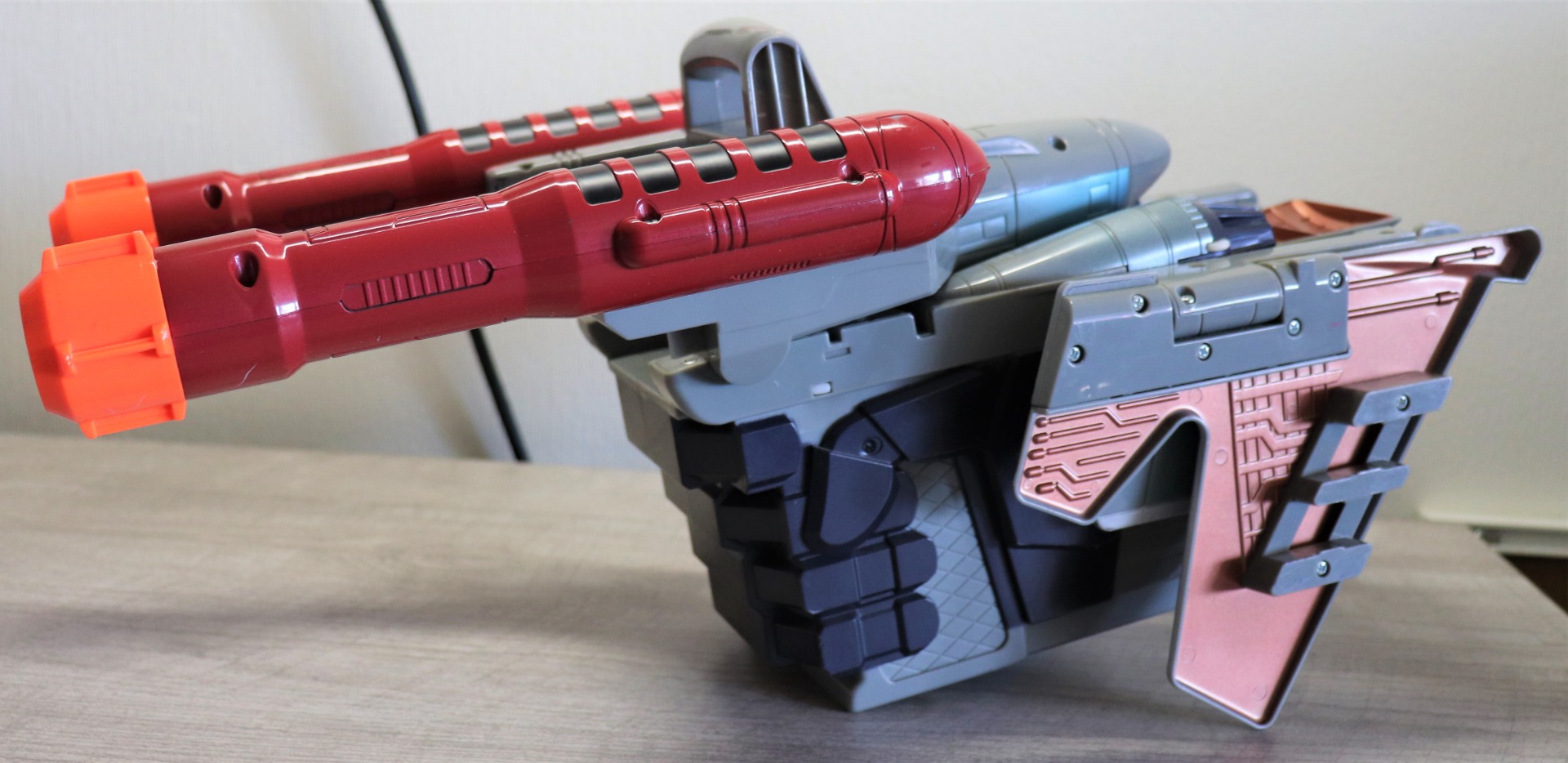 Converts to large gun which fires large foam darts.