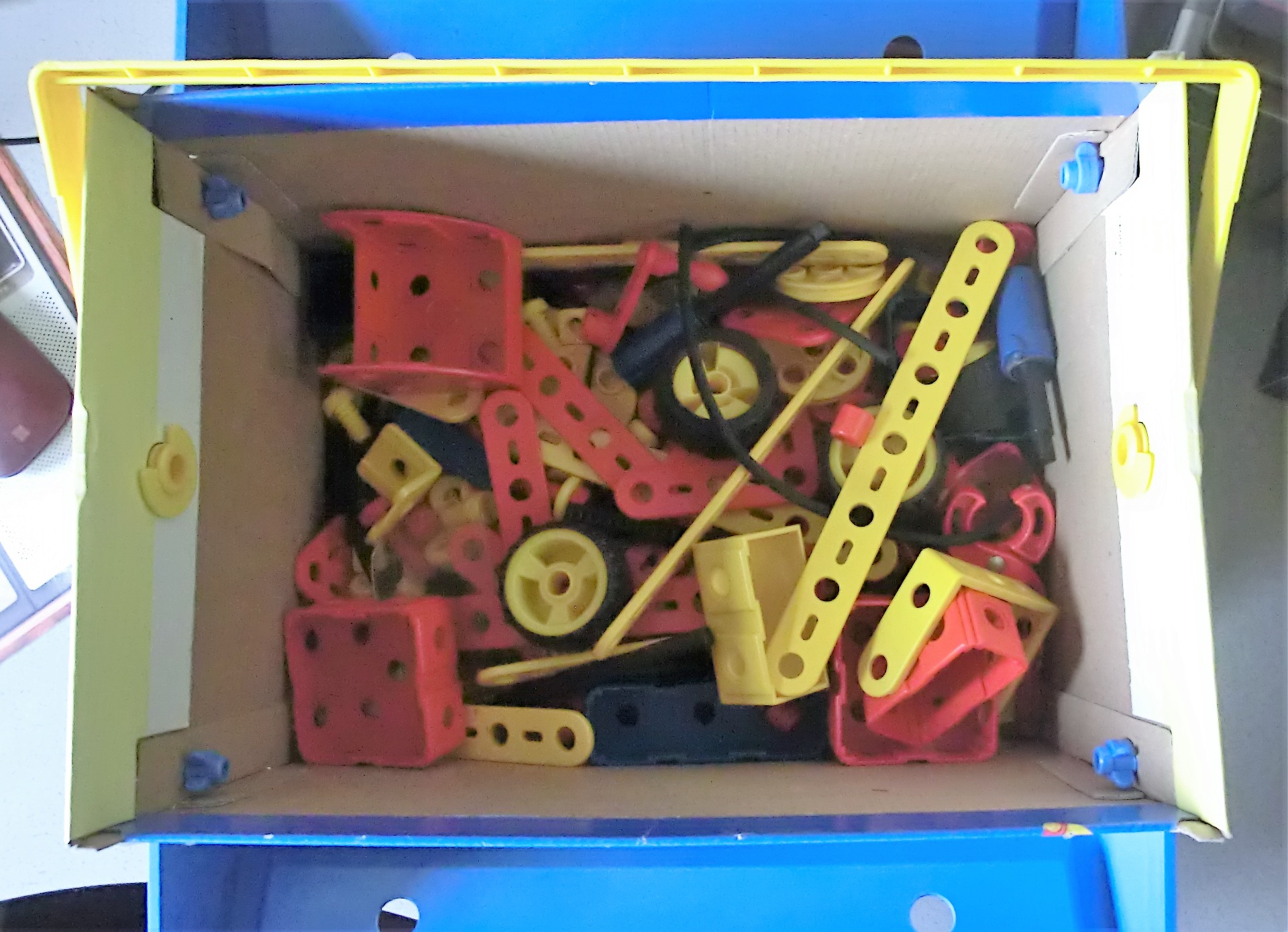 Mooie kist van Meccano Junior om urenlang te bouwen.