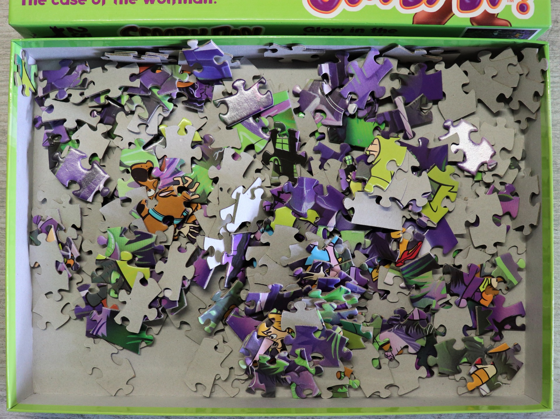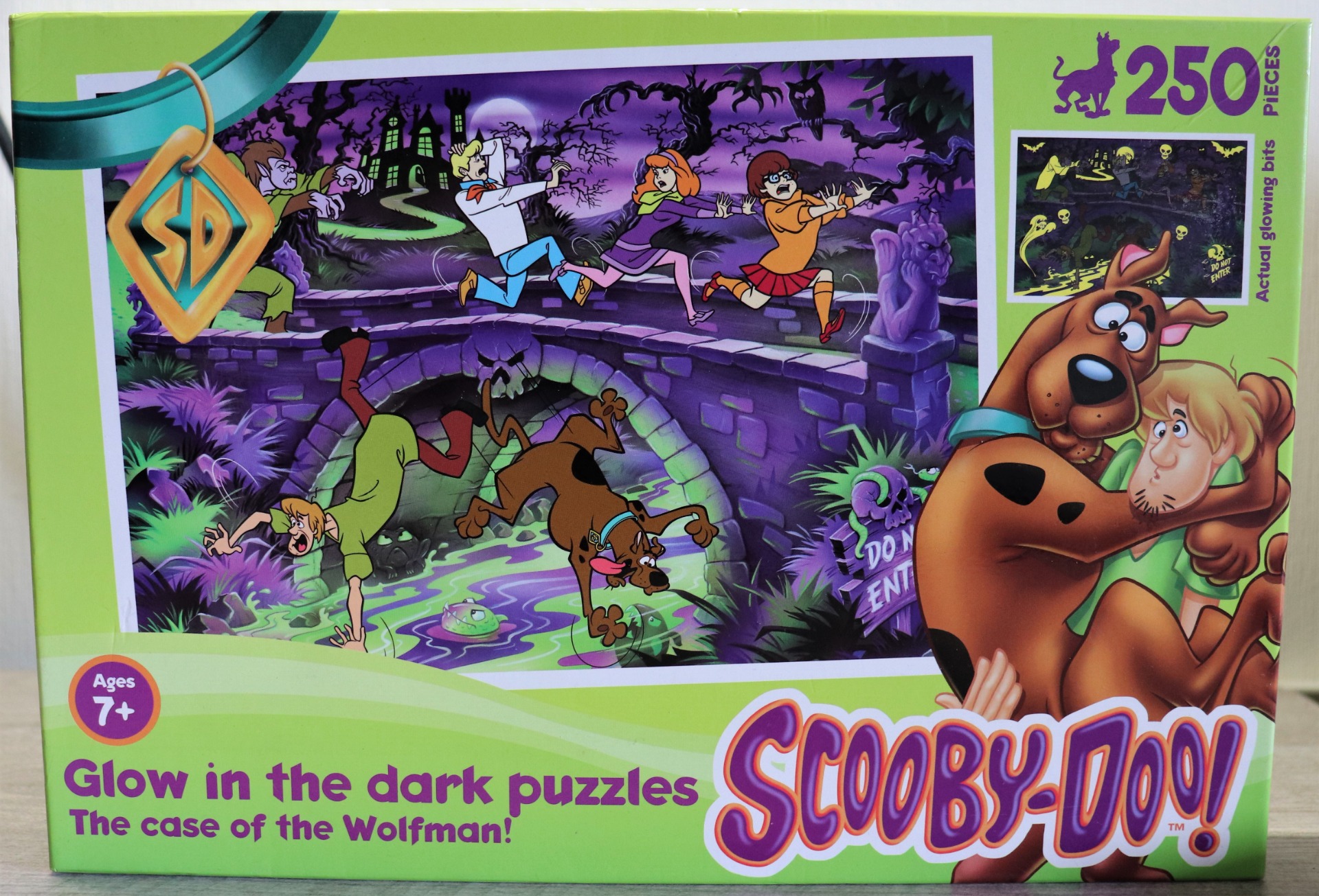 A delightful 100 piece Scooby Doo Glow in the Dark puzzle based on the animated TV and book series of Scooby Doo. The puzzle image consists of all the lovable characters from the Scooby-doo series - Fred, Daphne, Velma, Shaggy and of course Scooby Doo himself, all running away from the frightening Green Ghost. Can the gang solve the mystery this time? Once this spooky 100 piece puzzle is complete, switch off the lights and then watch as the ghosts appear!