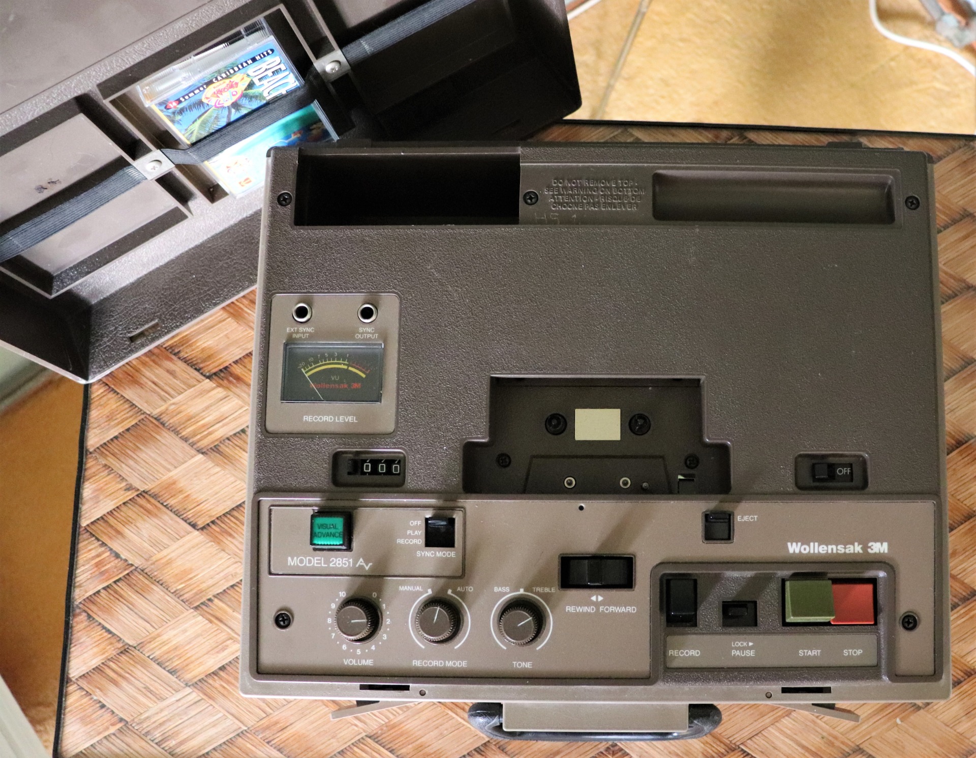 Wollensak 3M Model 2873 Cassette System for sale. This machine is for automating slide shows with audio. You can record what you want and sync it with the particular slide it would be about and advance the slide projector on to the next slide. This is especially useful for presentations when the person knowledgeable about the slides might not be there to present them. This unit has been tested to power on and to make sure the cassette motor works to forward, rewind, and play. Sound has been tested and works perfectly.This unit is works with the following projectors: