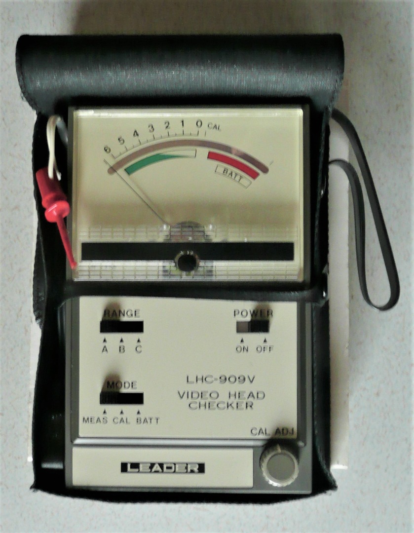 Notes: Inductive checker for VHS video heads. Test frequency 1MHz. Principle of minimized bridge with meter for good/bad display.