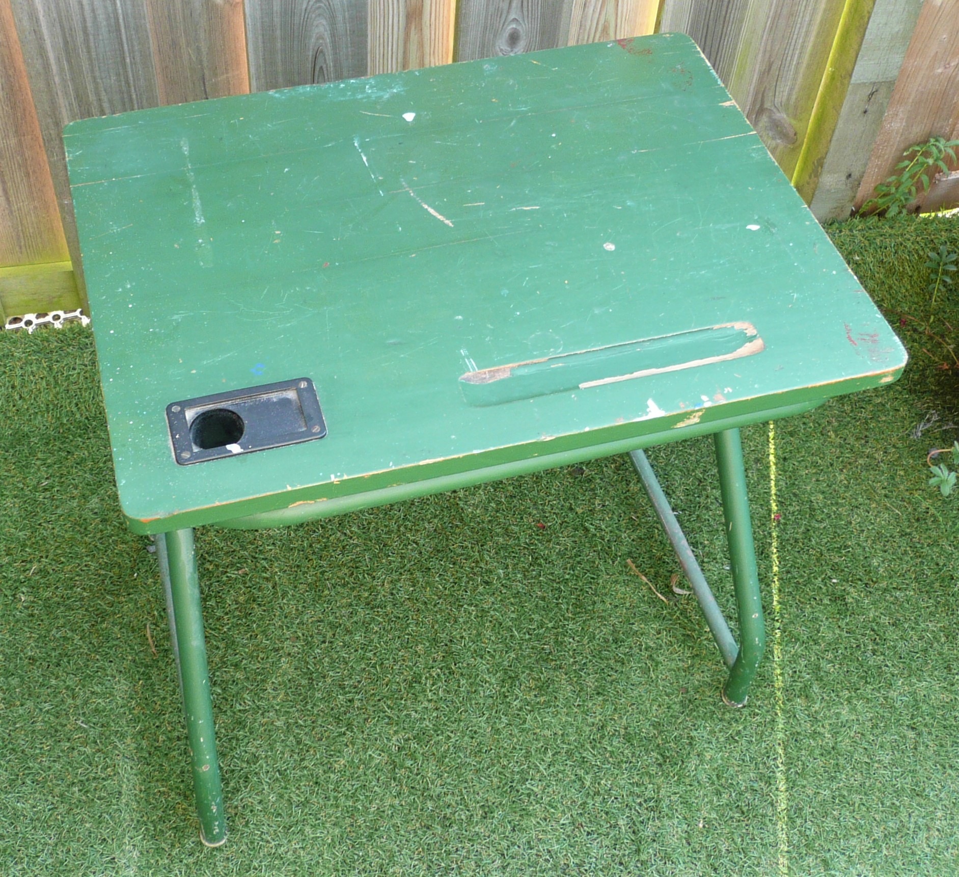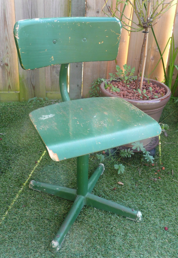 Zeer oud tafeltje met bijpassende stoel welke op de scholen werden gebruikt.