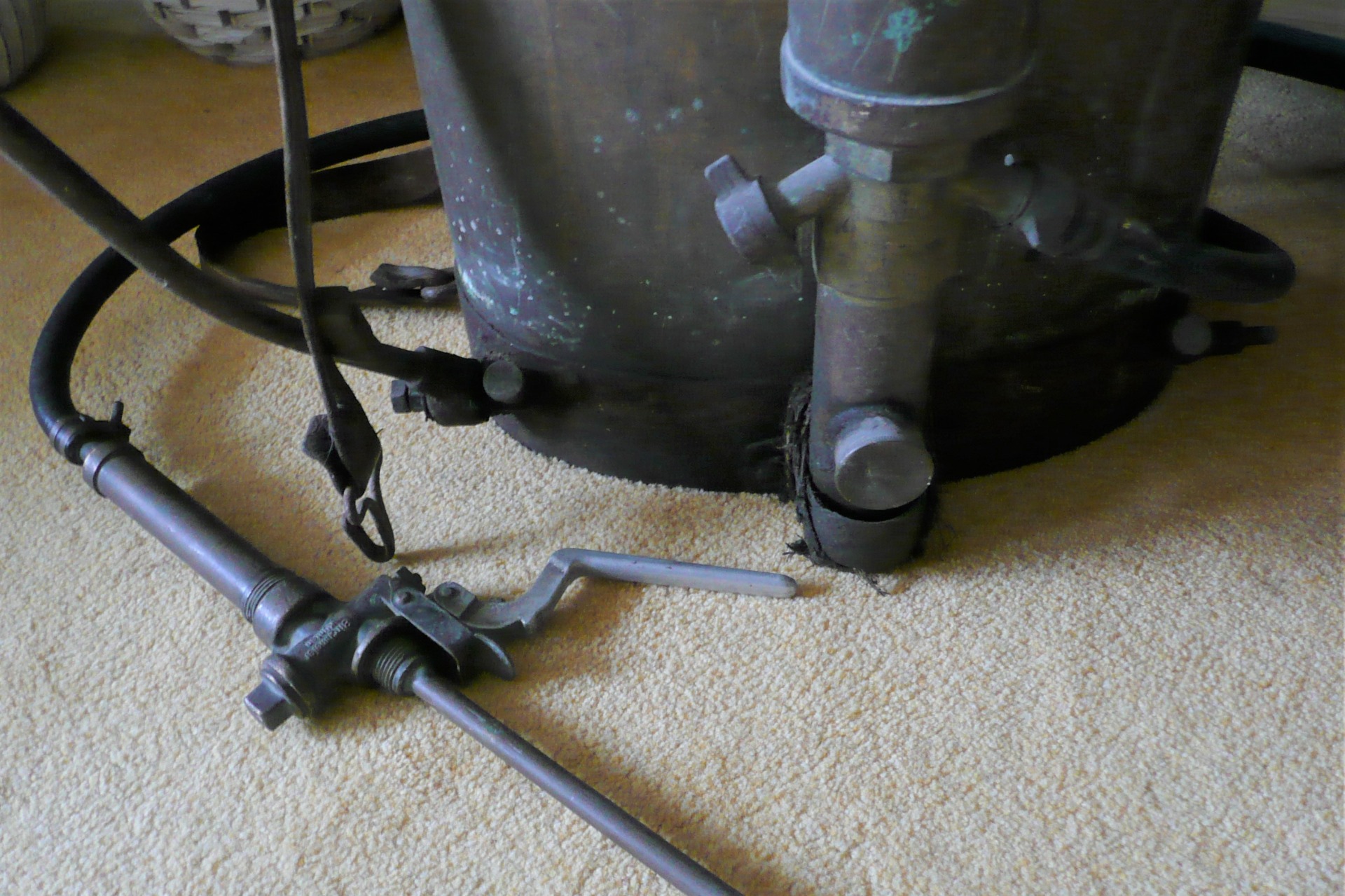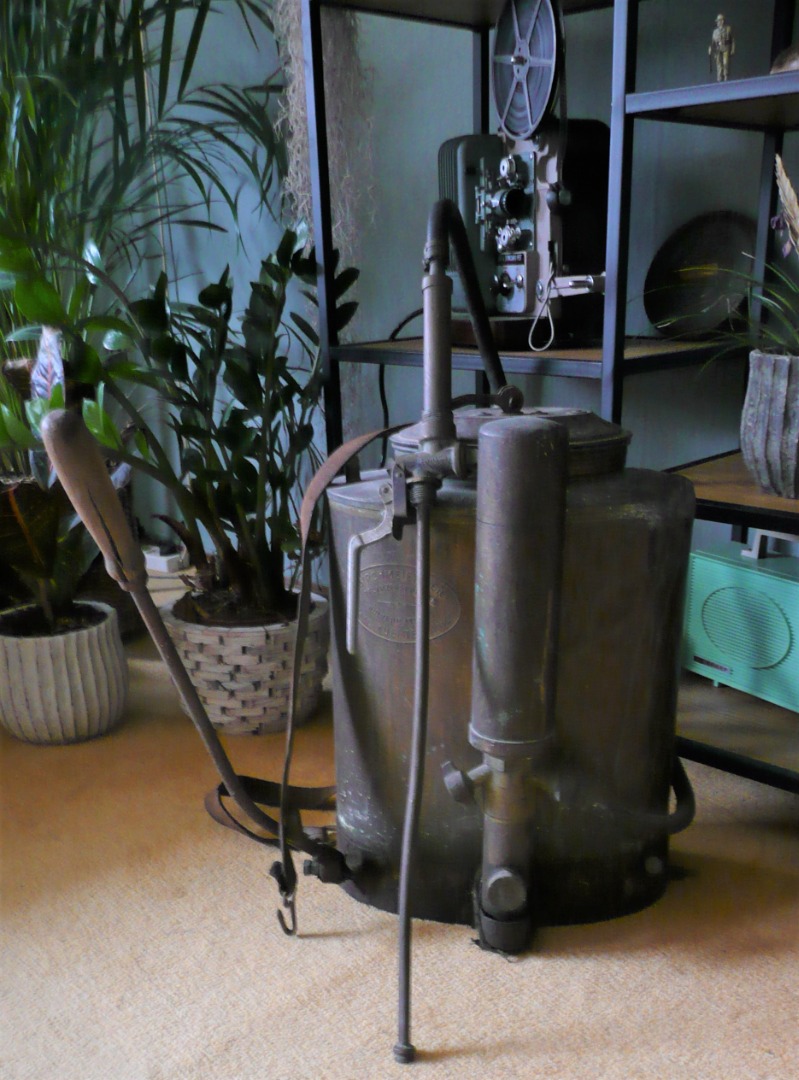 Oude koperen gifspuit/onkruidverdelger van de Birchmeier & Cie.